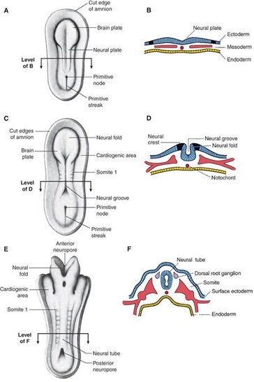 The neural plate folds to give rise to the neural tube, which is open at both ends at the anterior and posterior neuropores. The anterior and posterior neuropores connect the lumen of the neural tube with the amniotic cavity.