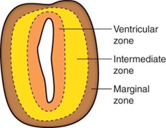 The marginal zone also contains glioblasts, which differentiate into astrocytes and oligodendrocytes.